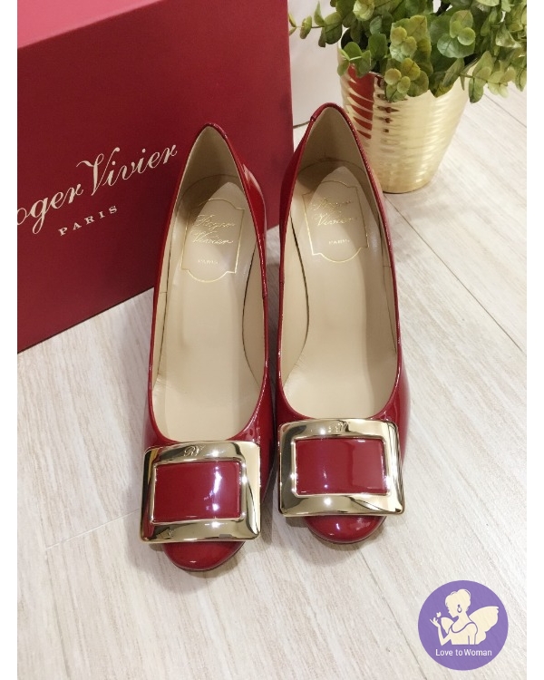 RV 65高跟鞋 紅金方扣 35