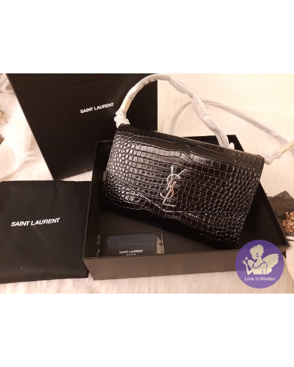 超美YSL鱷魚紋牛皮信封包 大款黑色